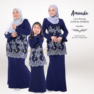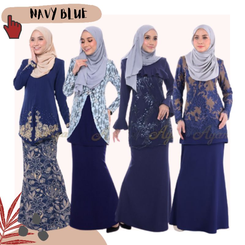 Hot Selling Koleksi Baju Kurung Lace Plain Printed Warna Navy Blue Biru Laut Shopee Malaysia